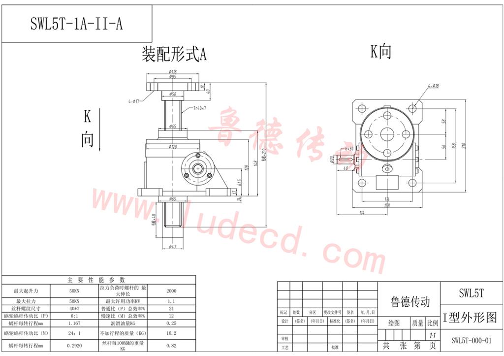 SWL5蝸輪絲杆(gǎn)升降機圖紙