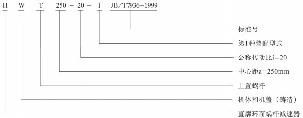 減速機因采用環(huán)麵蝸(wō)杆副,器蝸杆軸向截麵齒廓為直線,故稱其為直廓環麵蝸杆也稱球麵蝸杆。該(gāi)係列包括HWT型、HWWT型、HWB型、HWWB型四種型式,T表示為上置蝸杆;B下置蝸杆;W焊接機體和機蓋,不標注為鑄造結構。其承載能力和傳動效率較高,特別適用於重載、大功率、大轉矩傳動。