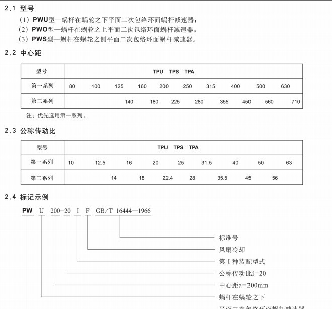 二次包絡環麵蝸杆減速機有PWU型、PWO型和PWS型三種,其蝸杆(gǎn)齒麵是一個平麵為母麵,通過相對圓(yuán)周運動,包絡出環麵蝸杆的齒麵,再從蝸杆(gǎn)的齒麵為(wéi)母麵,通過相對運動包絡出蝸(wō)輪的齒麵,稱為平麵