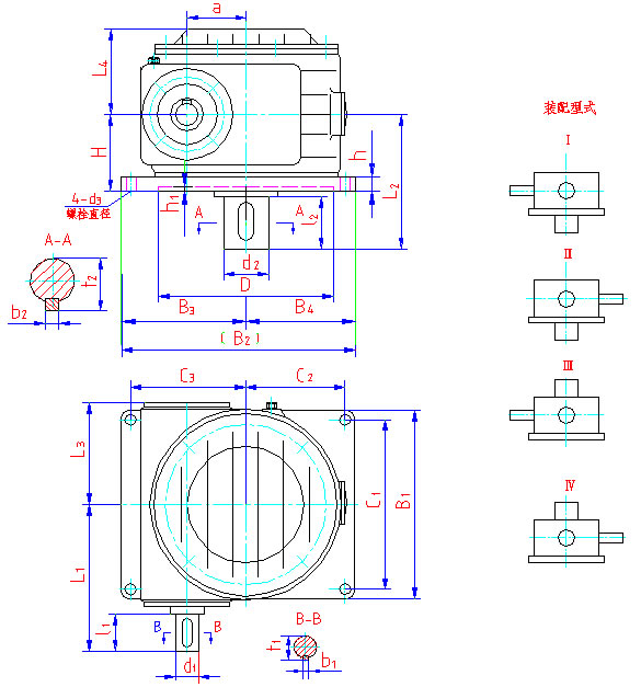 尺(chǐ)寸(cùn) 型號 | a | B1 | B2 | B3 | B4 | C1 | C2 | C3 | D | h | h1 | i ≤ 12.5 | ||||