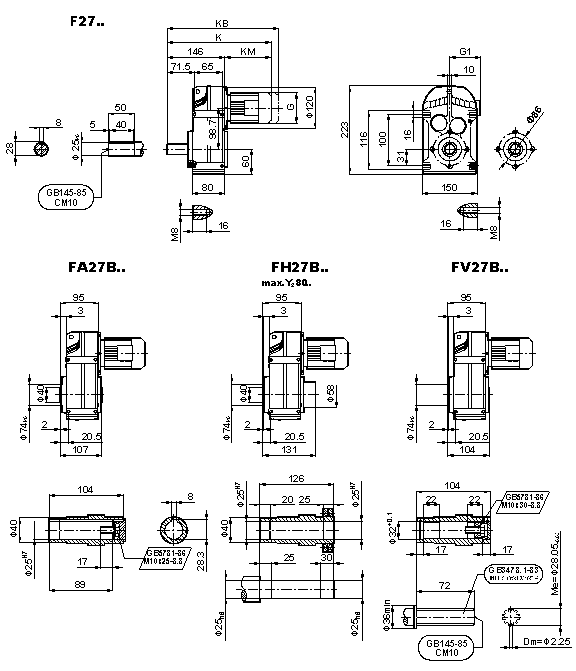 外形安裝尺寸(cùn)(F27、FA27B、FH27B、FV27B、FF27、FAF27B、FHF27B、FVF27B、F..27/G、FA27、FH27、FV27、FAZ27、FHZ27、FVZ27)