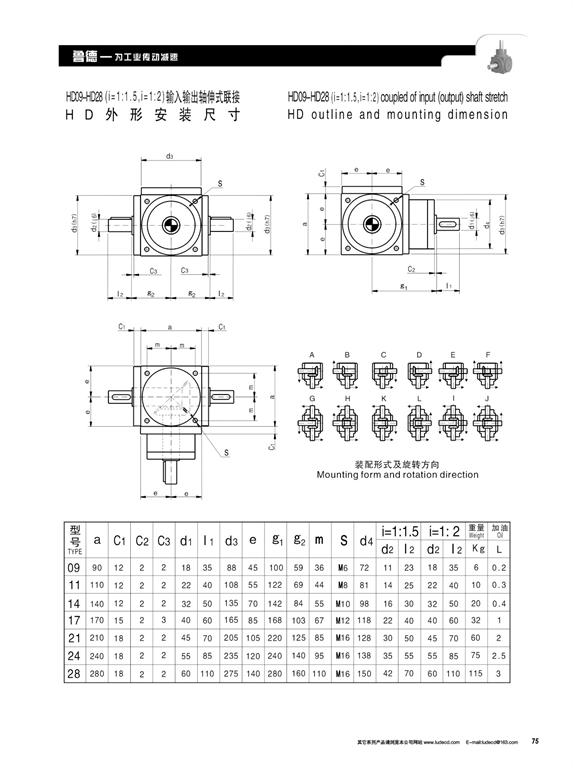 HD係列螺旋錐齒輪轉向箱參數(圖)
