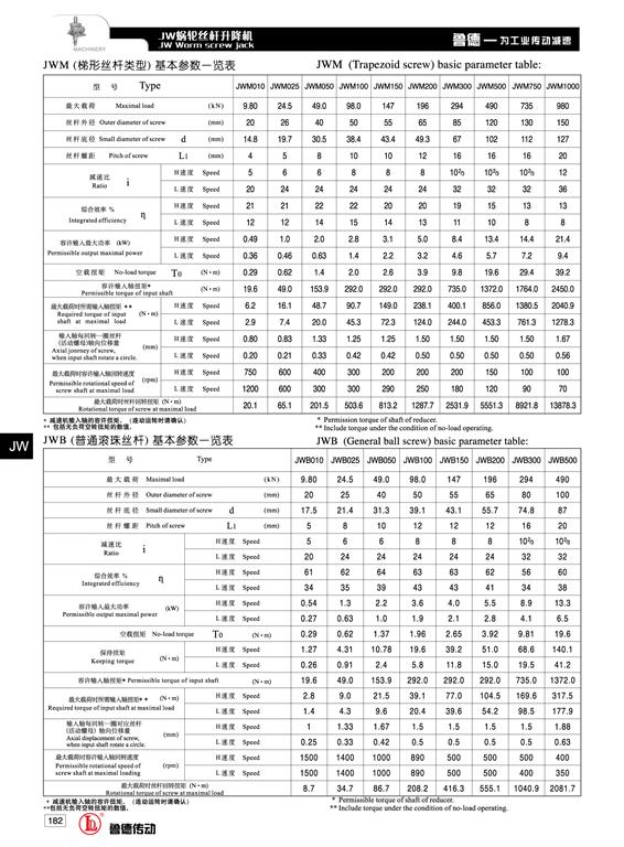 JW係列(liè)(滾珠)蝸輪(lún)絲杆升降機基本參數