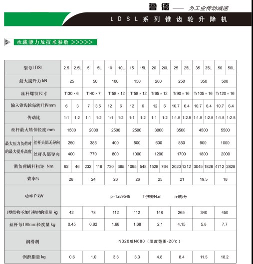 LDSL錐齒輪(lún)絲杆升降機技術參數