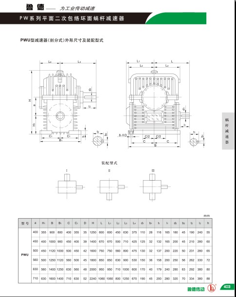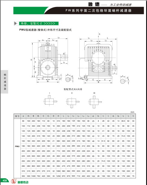 減速機-PWU平麵二次包(bāo)絡減速機安裝尺寸-17C傳動