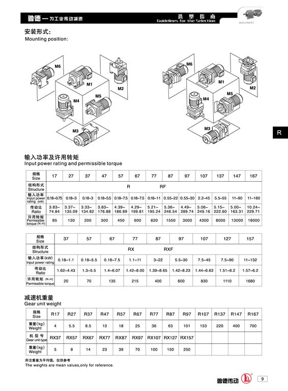 速比範圍:R基(jī)本型3.33~289.74,RX型1.3~8.65,R/R組合型(xíng)可達到27001