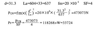 ⑤絲杆穩定性校核(hé):以為施加壓縮載荷(hé),所以按照絲杆穩定性校驗計算公式進行校核,在根據JWB050US尺(chǐ)寸圖得出L=637取安全係數=4