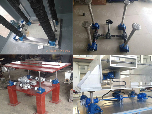 蝸輪絲杆(gǎn)升降機平台將電機、減速機、轉向器、蝸輪蝸杆升降機通過聯軸器、連杆等(děng)巧妙地組(zǔ)合在一起,能夠達到多台穩定、同步、往複升降的要求,也可實現翻轉運動。