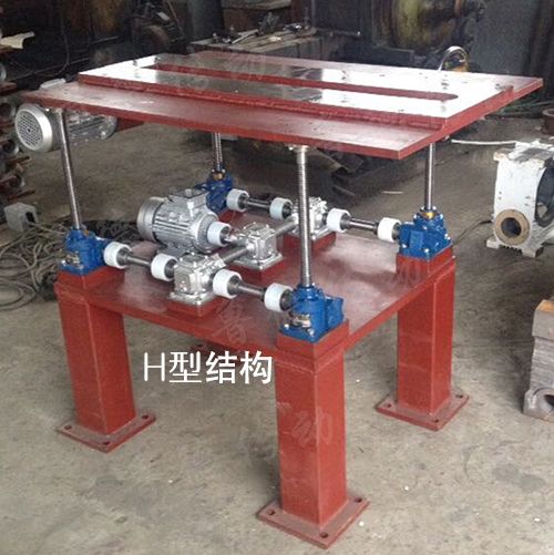 四柱絲杆(gǎn)升降平台選用四台相同型號升(shēng)降(jiàng)機配合轉向器、連接杆等附件組(zǔ)成(chéng),四柱平台根據用戶安裝(zhuāng)要求(qiú)可設計成T型、U型、H型,可適合多種工況安裝使用(yòng)。