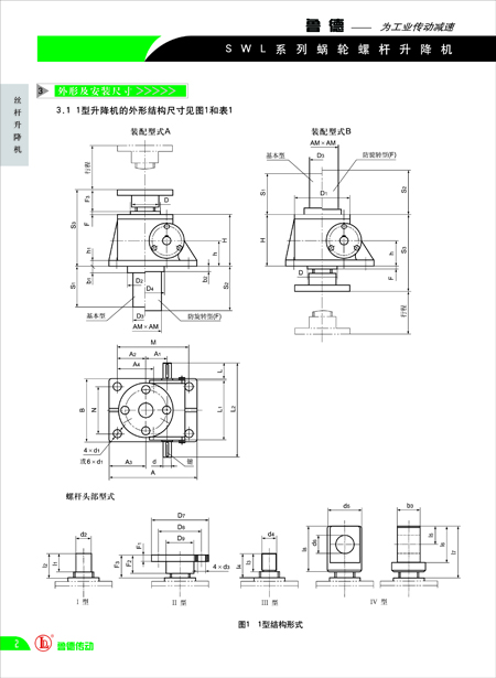 SWL蝸輪絲杆(gǎn)升降機外形結構(gòu)尺寸圖