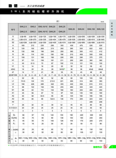SWL係列蝸輪螺杆(gǎn)升降機有不同的結構型式和裝配方式,提升高度可按要求加工製造(zào)。請根據實際使用負荷、螺杆行程和起升速度選擇合適的