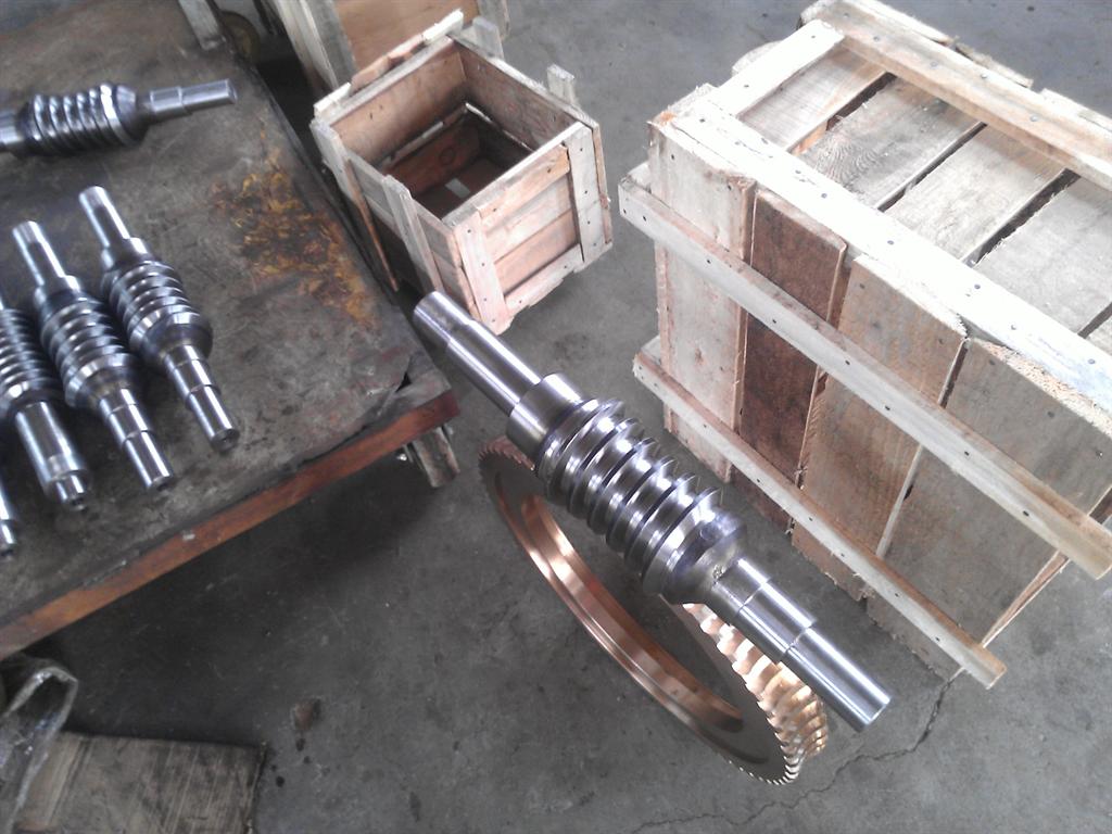 為了避免膠合和減緩磨損,蝸輪蝸杆傳動的材料_具備(bèi)減摩、耐磨和抗膠合的性能。一般蝸杆用(yòng)碳鋼或合(hé)金鋼製成,螺旋表麵應經熱處理(lǐ)(如(rú)淬火和滲碳),以便達到(dào)高的(de)硬度(HRC45~63),然後經過磨削或珩磨以提高傳動的承載能力。蝸輪多數用青銅製造,對低速(sù)不(bú)重要的(de)傳動,有時也用(yòng)黃銅或鑄鐵(tiě)。為了防止(zhǐ)膠合和減緩(huǎn)磨損,應選擇良好的潤滑(huá)方式,選用含有抗膠(jiāo)合添加劑的潤(rùn)滑油(yóu)。