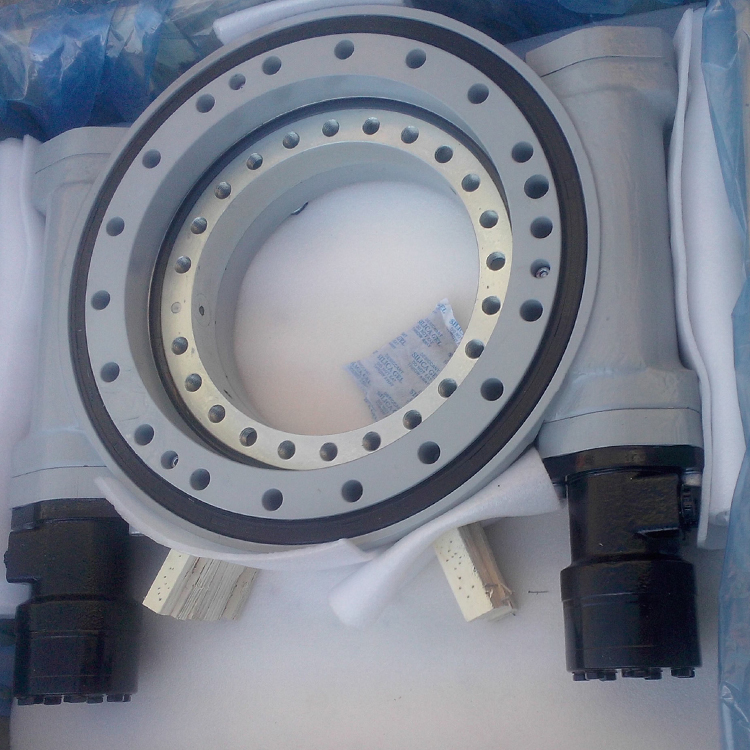 減速機通常(cháng)由蝸杆、渦輪式(shì)回轉支承、殼體、動力源組(zǔ)成,一般配直流(liú)行星減(jiǎn)速電機或交流減(jiǎn)速電機為主;在(zài)工程機械(xiè)上主要配液壓馬達作為動力驅動係統。