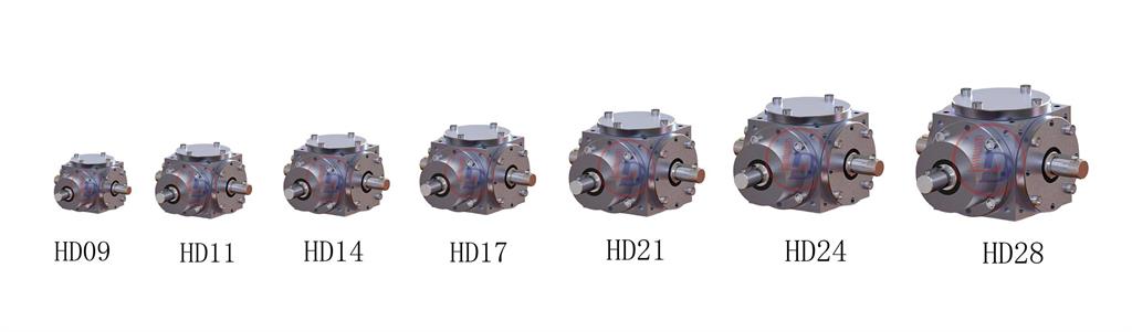 4、HD係列換向器共有七種規格(gé),選型範圍(wéi)大,輸出軸形式多(duō)樣,可滿足多種場合的需要。