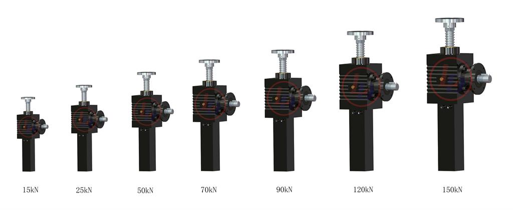 G係列錐齒輪絲杆梯形升(shēng)降機與蝸輪絲杆升降(jiàng)機相比主要特點為使用效率高,容易(yì)調(diào)整減速比,同時具有安裝使用方便,體積小、重量輕(qīng),動力源廣泛,無噪音,裝配型式(shì)多樣,可靠性高等特點。該係列(liè)產品具有自鎖功能,能按程序準確的控製調整提升(shēng)或推進高度。結構型(xíng)式多樣,提升高度可根據用戶(hù)要(yào)求製造。