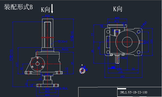 結構型式分為1型:蝸輪(lún)與(yǔ)螺杆為螺紋連接,螺杆作軸向運動;2型:蝸(wō)輪與螺(luó)杆為鍵連接,螺杆上配螺母,螺杆上的螺母作軸(zhóu)向(xiàng)運動。1型結構型式(shì)又分為(wéi)兩種裝配型式即A:螺杆工作(zuò)端在上(shàng);B螺杆工作端在下。2型結構型式也有兩種裝配型式即:A:螺杆工作端在上,螺(luó)母上(shàng)頂或下拉;B螺杆工作端(duān)在下,螺母下壓或上拉。