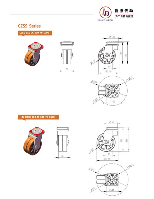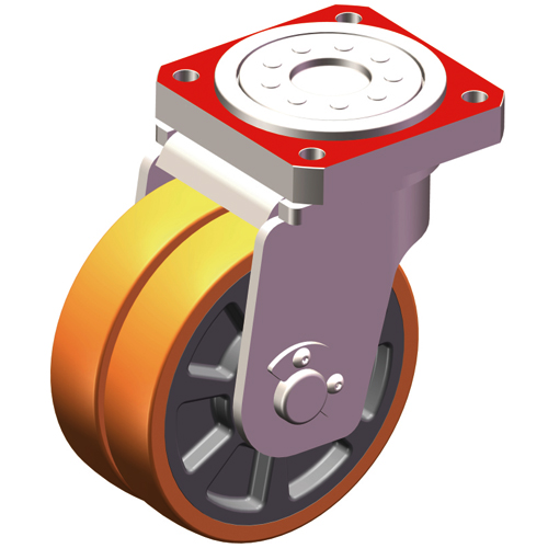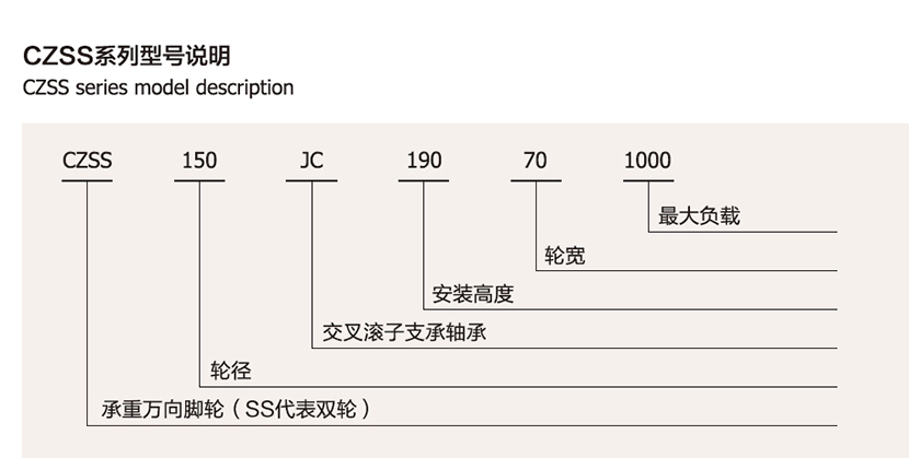 CZSS輪芯采(cǎi)用(yòng)精密鑄鐵或精密壓鑄鋁合金成型,回轉機構采用專 業設計的非標滾珠軸承,經特殊工(gōng)業製造,已達到轉動靈活、抗衝擊、耐疲勞的作用。輪麵采用化學(xué)反應澆鑄的(de)優 質進口聚氨酯彈性體,行走噪音低、無壓痕(hén)、保護地麵、耐磨、抗切割。