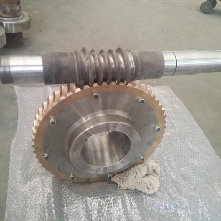 蝸輪蝸杆用於兩交叉軸(交叉角一般為直(zhí)角)間的傳動。蝸輪相當於(yú)斜齒圓柱齒輪,其齒輪分布(bù)在圓環麵上使齒輪能包住蝸杆(gǎn)已_接觸狀況這是蝸(wō)輪形體的一個特(tè)征(zhēng)。蝸輪多采用錫(xī)青銅有利於減小摩擦,青銅質地比較軟,一般蝸(wō)杆(gǎn)的材料都(dōu)比(bǐ)蝸輪(lún)硬,蝸(wō)輪是被動(dòng)輪,蝸杆是主動輪一(yī)般都與電機相連,萬(wàn)一設(shè)備發生故障不能轉動,電機(jī)可以通過蝸杆把質地軟的蝸輪損壞,來保護(hù)電機不被燒壞。
