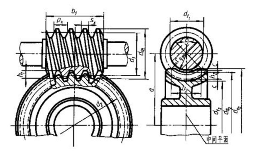 蝸輪蝸杆傳動(dòng)_常用的蝸杆為圓柱型阿基米德蝸杆,這種蝸杆的軸向齒廓是直線軸向斷麵呈等腰梯(tī)形與梯形螺紋相似。蝸杆(gǎn)的齒數稱為頭數相當於螺紋的線(xiàn)數常用單頭或雙頭。一般情況下蝸杆為主動(dòng)軸,材料是密(mì)度大的合金鋼不易磨損,蝸輪(lún)為從動軸材料為青銅。
